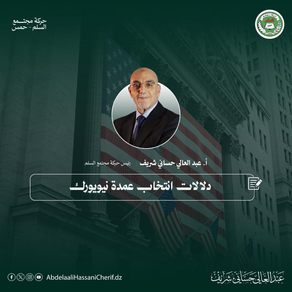 في مقاله الجديد، تناول رئيس حركة مجتمع السلم، أ. عبد العالي حساني شريف، دلالات فوز زهران ممداني، أول مسلم يُنتخب عمدة لمدينة نيويورك، معتبراً هذا الحدث تحولاً عالمياً في الوعي السياسي يتجاوز الانتصار الحزبي المحلي.